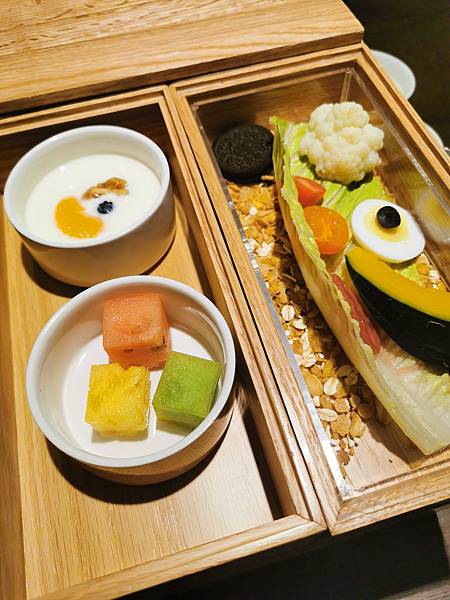 西式附的是麵包 穀片燕麥 雞腿肉 水果
